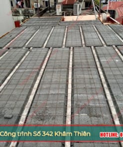 - Gia công lắp đặt cốt thép xong. Đổ bê tông liên kết các tấm panel và tạo khung cứng cho xà ngang thép