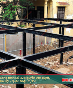 - Khung thép chủ yếu được chế tạo tại xưởng sau đó lắp ráp trực tiếp tại công trường.